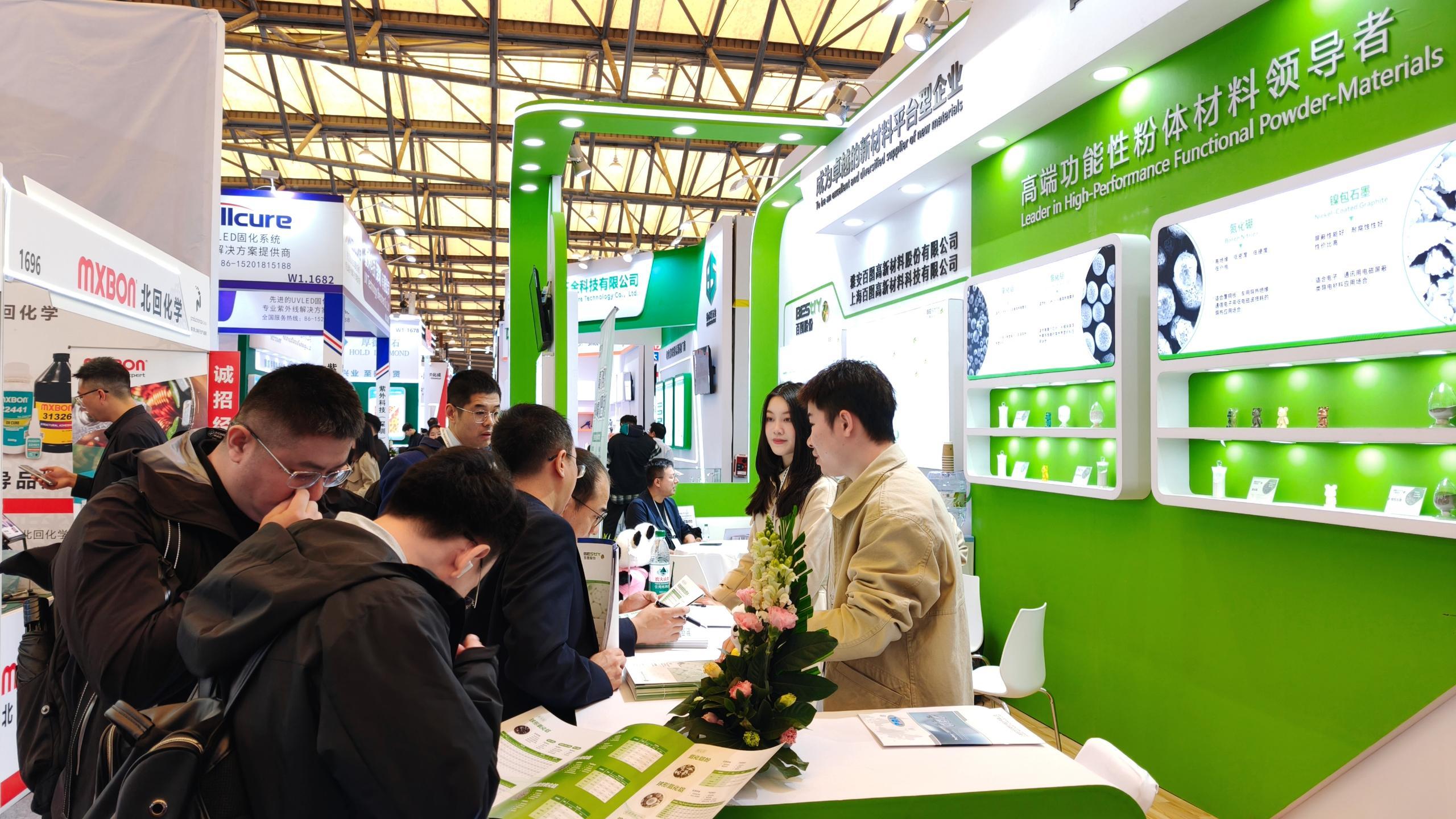 展会期间,百图股份展位始终人流如织。来自新能源汽车、人工智能、芯片封装、超算中心等领域的专业观众驻足交流,深入了解公司球形氧化铝、氮化物、亚微米氧化铝、镍包石墨等核心产品的技术优势与应用场景。